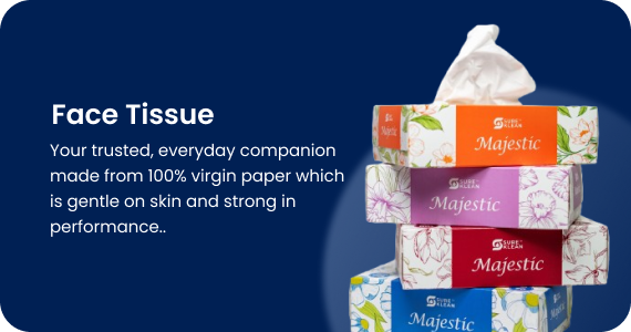 We manufacture a wide range of tissue paper and napkin products including facial tissues, toilet rolls, kitchen towels, and tabletop napkins suitable for hotels, hospitals, and offices.